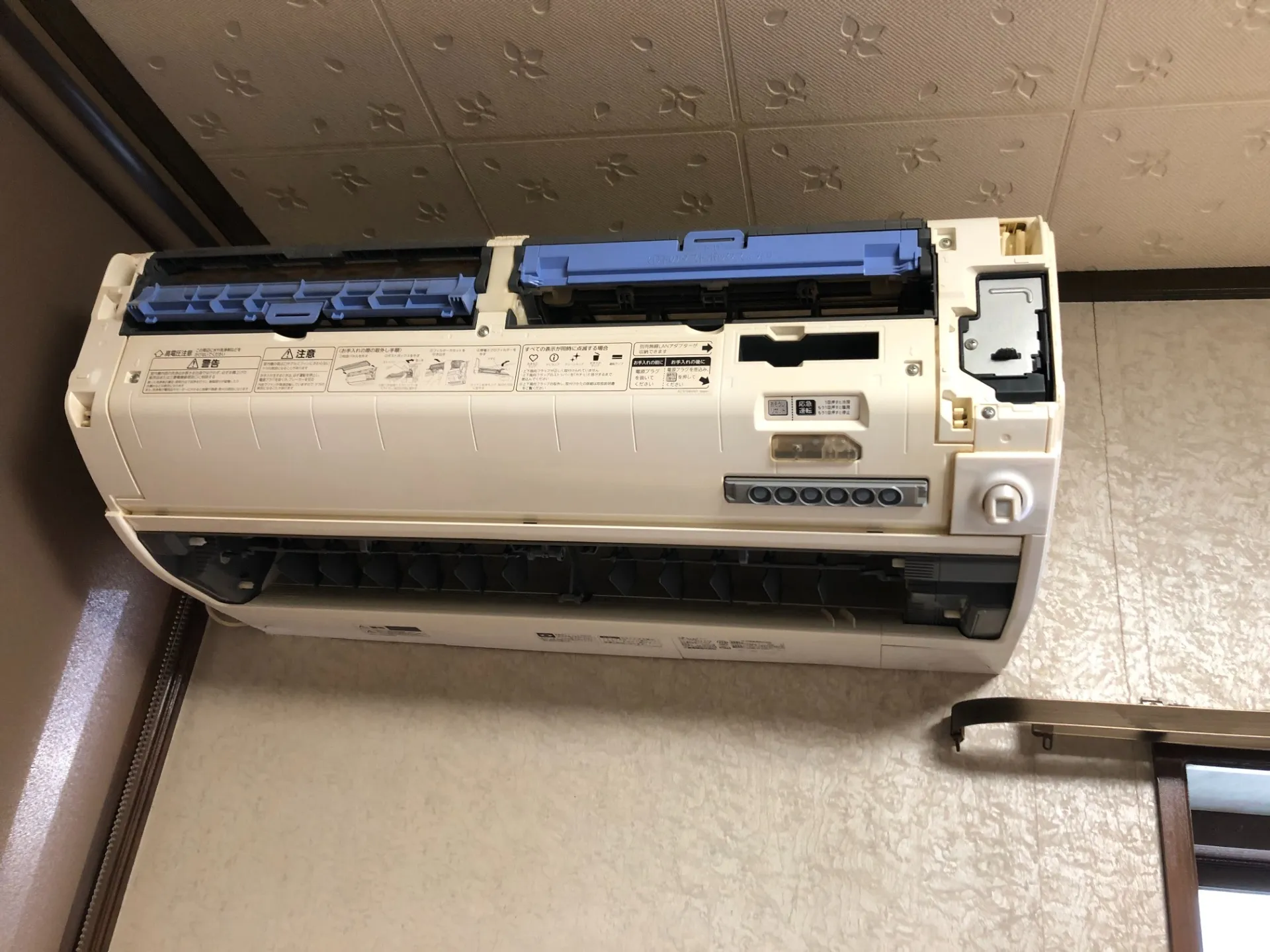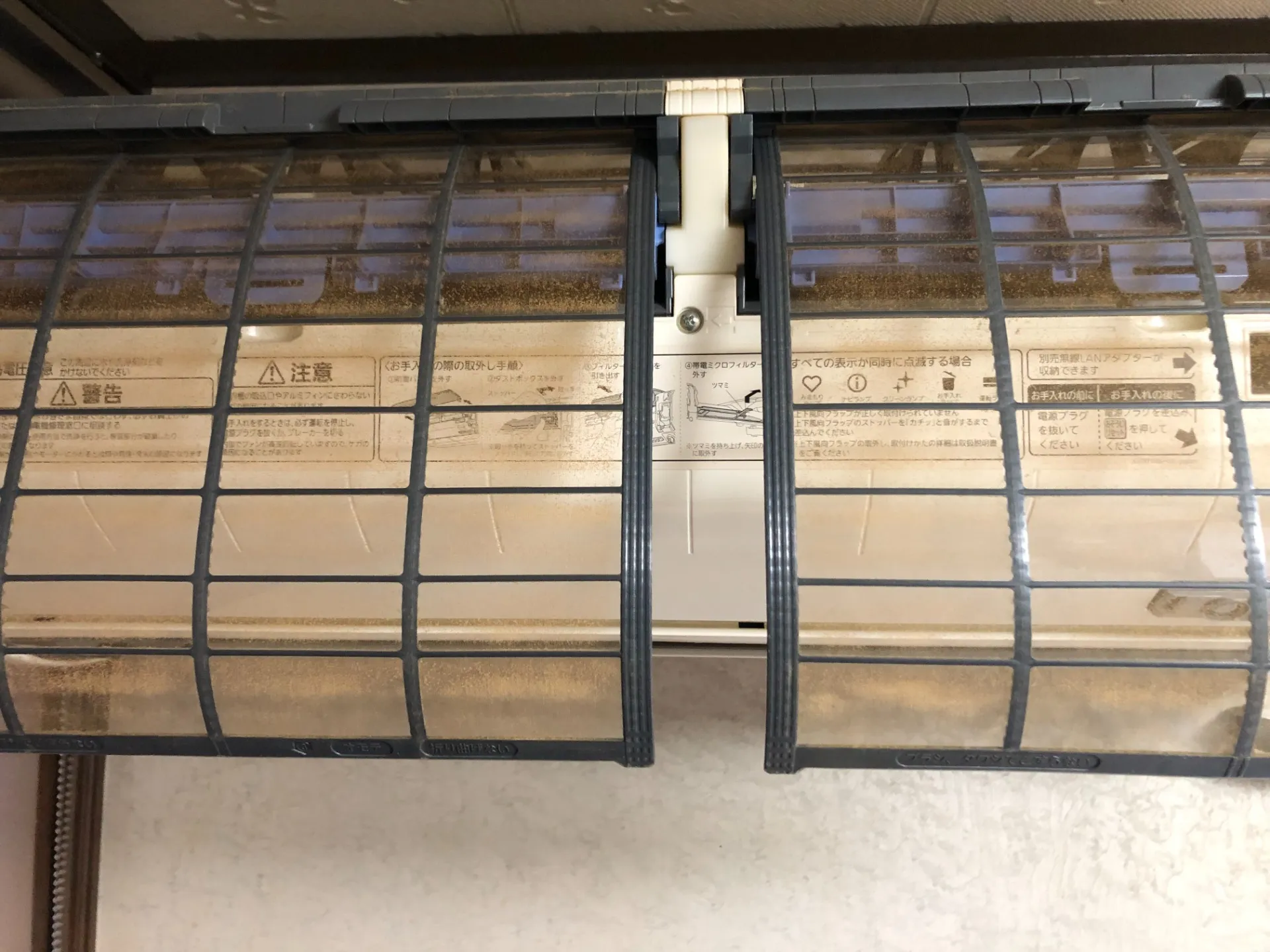 タバコの煙で汚れた三菱製お掃除機能付きエアコン|エアコンクリーニング専門店みらくる